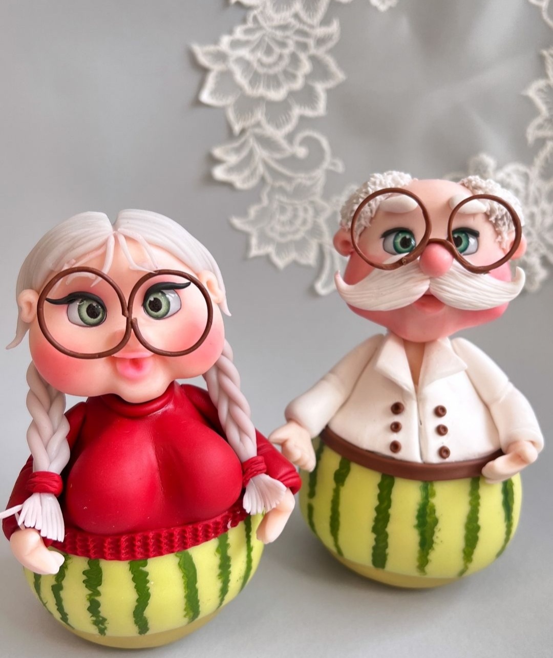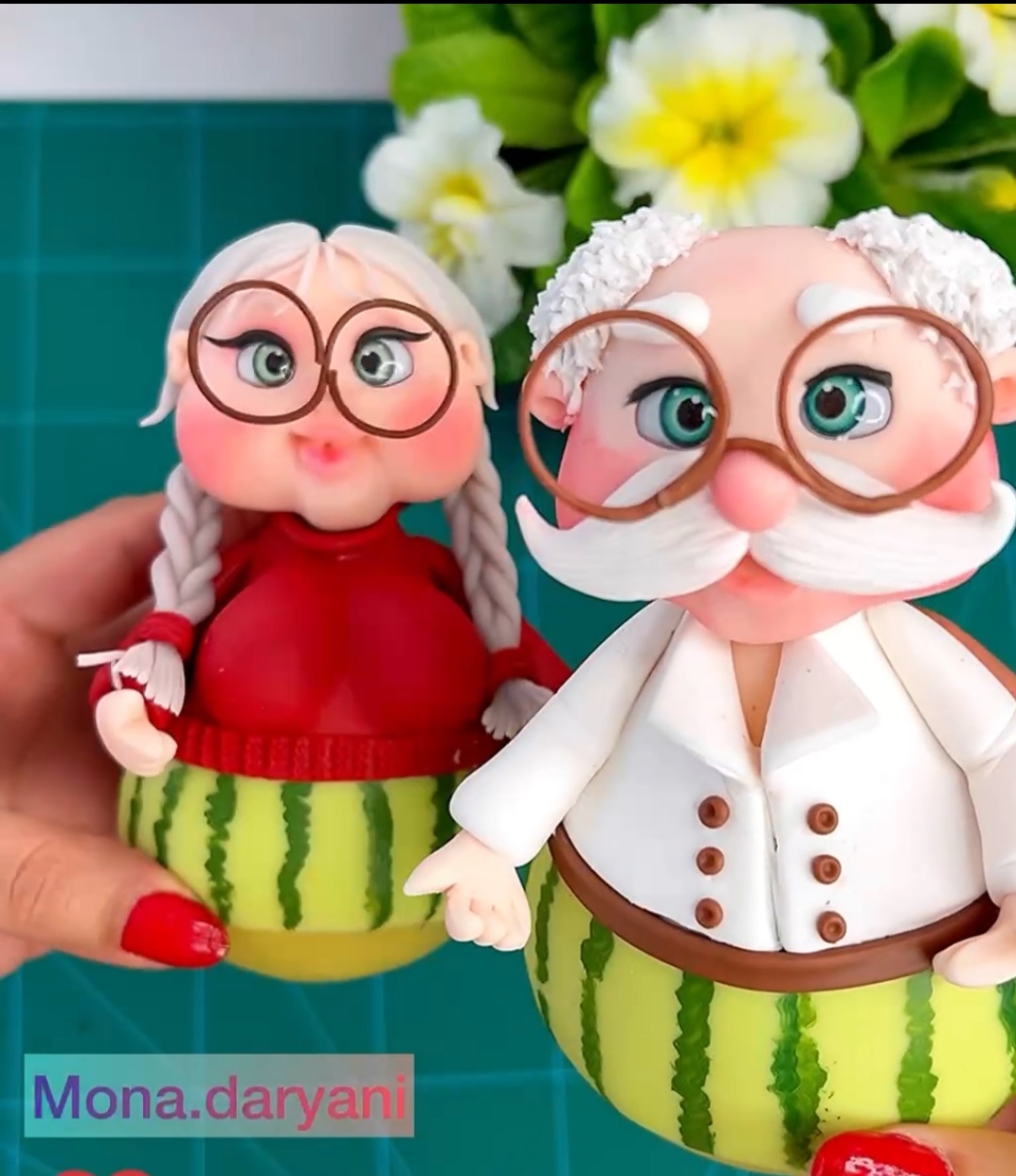 دکوری هندوانه خانم و آقا یلدایی / قابل شستشو/بسیار شیک و جذاب/ خمیر ایتالیایی/ مناسب تم یلدایی/ کادو و هدیه دادن/ هندوانه ژورنالی / قابل سفارش در تعداد و اندازه دلخواه/ متریال درجه یک